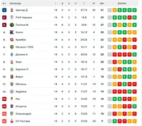У зоні перехідних матчів перебувають Рух (13), який здолав Олександрію та Епіцентр (11). На останніх позиціях чемпіонату розмістилися Олександрія (10) та Полтава (9).
