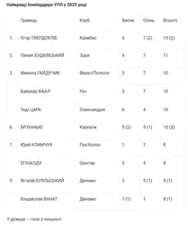 Відомий найкращий бомбардир УПЛ у 2025 році – гравці Динамо і Шахтаря не потрапили навіть в топ-6
